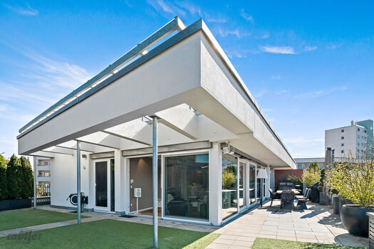 Diese einzigartige Immobilie besticht durch eine lichtdurchflutete Architektur, einem 220 qm großen und repräsentativen Terrassenbereich, modernen Standards und einer durchdachten Raumaufteilung - für Singles, Paare und Familien.