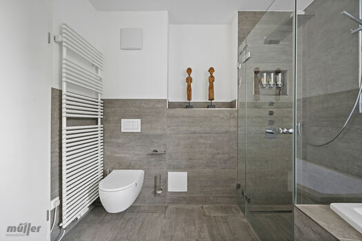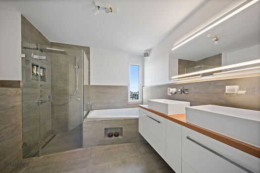 Tageslichtbad mit Wanne, Dusche und Doppelwaschbecken